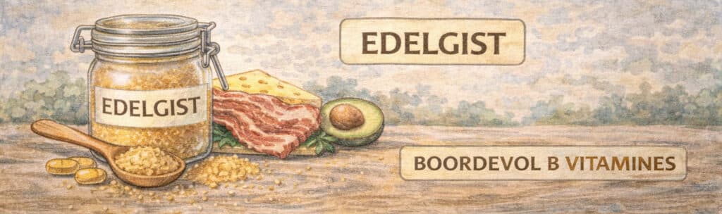 Edelgist zit boordevol verschillende B vitamines. Hierdoor helpt het geweldig bij de energieproductie. Je hebt B vitamines nodig om vet, proteïne en koolhydraten om te zetten in energie. Heb je te weinig B vitamines in je voeding dan voel je je moe.